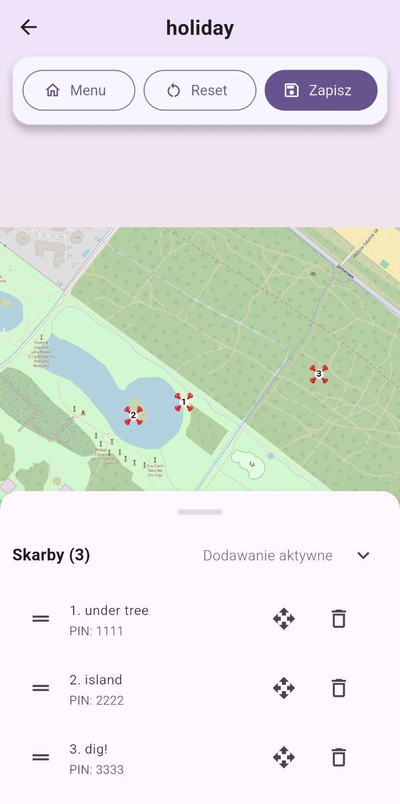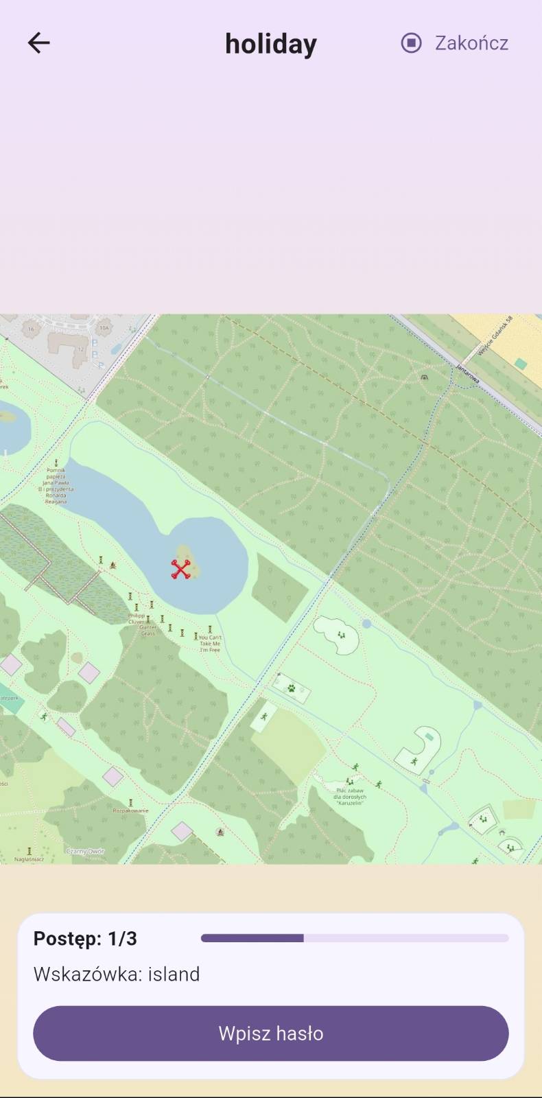 Rodzinna gra terenowa: twórz łańcuch skarbów i odblokowuj kolejne etapy PIN-em.